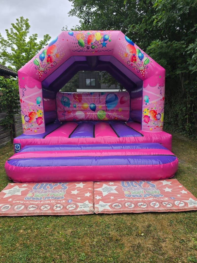 Here is our Pink and purple 2 bouncy castle this is similar to our Pink and purple but colours been reverse. With its bright vibrant colours this inflatable is a show stopper.
