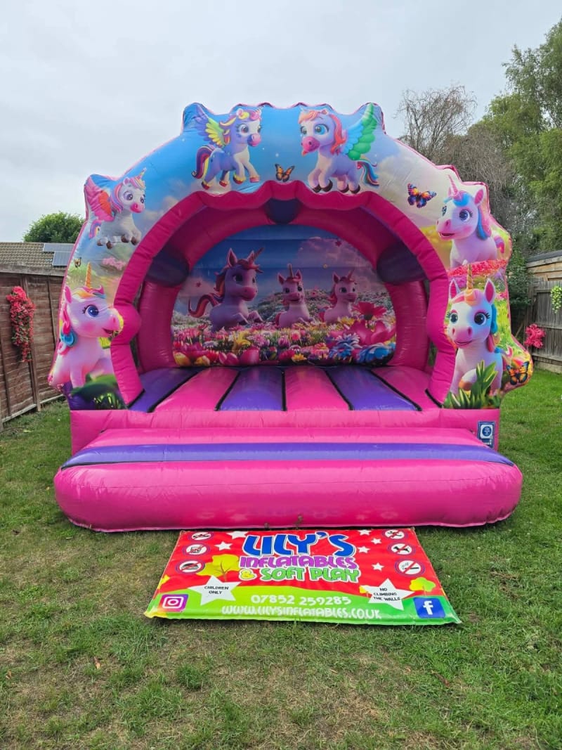 Unicorn Contour Bouncy Castle brings a magical and fairy tale atmosphere to any special event, Birthday, Christenings, Family Gatherings and many more.