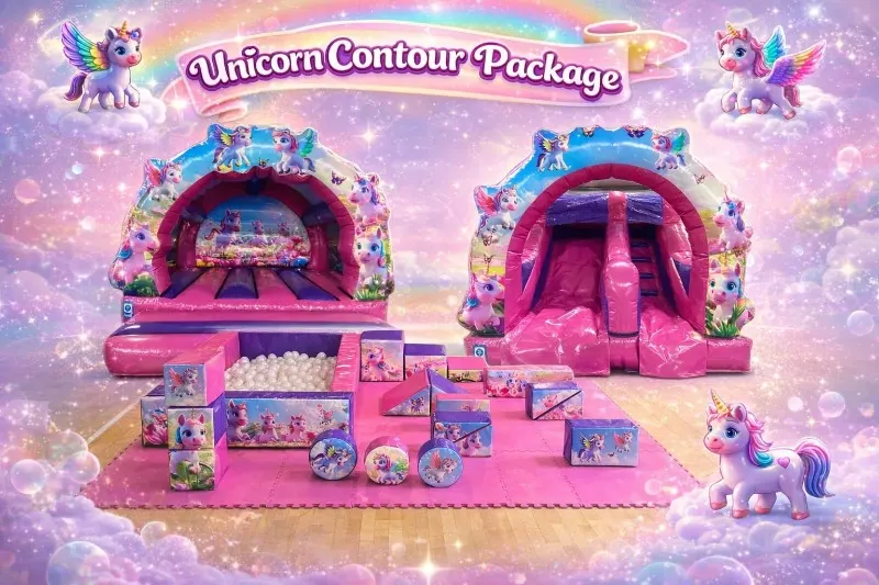 Here is our amazing Unicorn Slide Fun Package this is a great package which includes Bouncy castle, Inflatable Slide and Soft Play.
